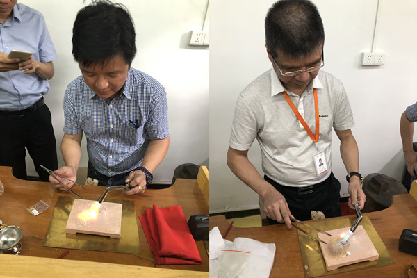 培訓(xùn)由廣州市工藝美術(shù)大師、國(guó)家貴金屬首飾制作高級(jí)技師周鏡釗主持。通過(guò)深入淺出的方式,培訓(xùn)師現(xiàn)場(chǎng)演示了黃金鑒別的方法,教授了“七青,八黃,九五赤”的獨(dú)特口訣,讓學(xué)員從零基礎(chǔ)到快速掌握黃金成色、質(zhì)量鑒別技能。培訓(xùn)課程還讓學(xué)員操作專業(yè)器械,親身體驗(yàn)了燒金技巧。通過(guò)本次內(nèi)部培訓(xùn),讓公司管理人員進(jìn)一步了解對(duì)黃金業(yè)務(wù)的認(rèn)識(shí),提高對(duì)公司經(jīng)營(yíng)業(yè)務(wù)的關(guān)注度。同時(shí)通過(guò)培訓(xùn)學(xué)習(xí),提振精神面貌,打造良好的企業(yè)文化。