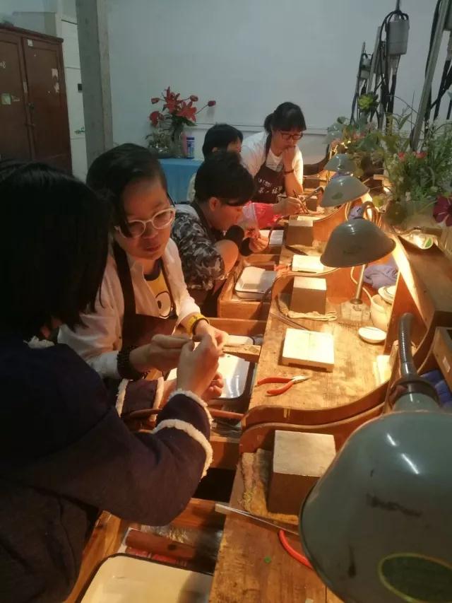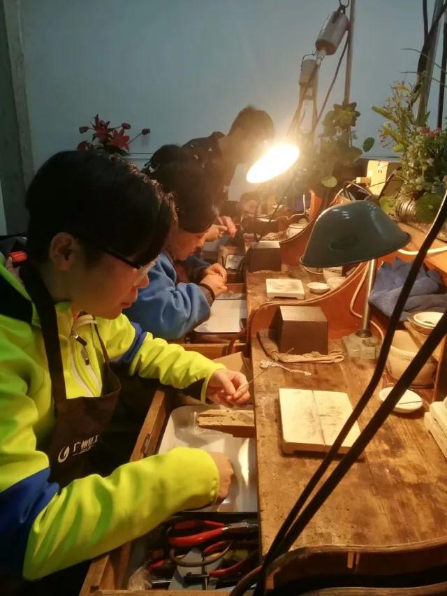 8節(jié)課,8個(gè)愉快周末,本次非遺學(xué)堂還邀請(qǐng)了幾位傳統(tǒng)手工打金的專業(yè)大師為學(xué)員們授課:廣州市工藝美術(shù)大師周鏡釗、省級(jí)非遺傳承人王永清、資深教師譚美娥,以及貴金屬高級(jí)技師甄世偉。