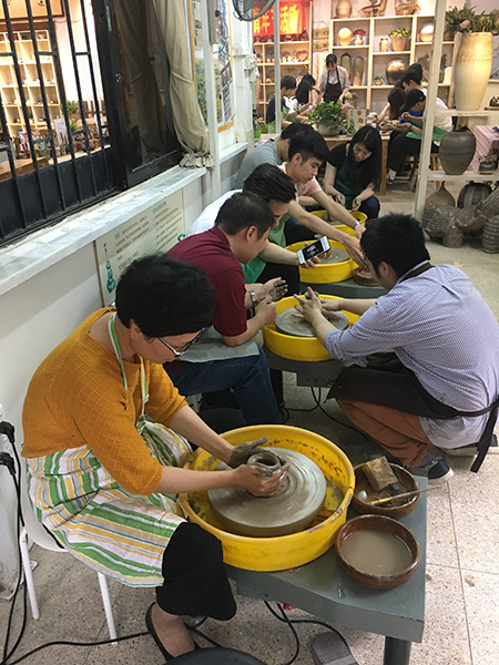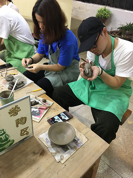 活動內(nèi)容是陶藝DIY,由青年團(tuán)員兩兩配對進(jìn)行組合,合作制作陶藝作品。制陶活動分為拉胚環(huán)節(jié)和手捏環(huán)節(jié),既考驗配合與信任,也挑戰(zhàn)想象和創(chuàng)意。青年團(tuán)員們紛紛擼起袖子,全情投入到制陶活動中去。每一位成員均配合默契、剛?cè)岵?jì),充分發(fā)揮無限創(chuàng)意,在陶藝?yán)蠋煹南ば闹笇?dǎo)下,把一團(tuán)團(tuán)濕潤的泥巴賦予了靈氣和想象力,變成一件件耐人尋味的藝術(shù)品?;顒幼詈筮€投票評選出三項優(yōu)秀作品并進(jìn)行頒獎。