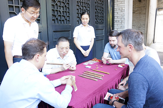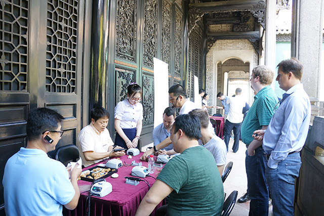 9月15日上午,“世界航線發(fā)展大會(huì)”的貴賓一行數(shù)十人來到廣東民間工藝博物館(陳家祠),參觀并體驗(yàn)了以象牙果雕刻、廣州欖雕等為代表的“第一福”傳統(tǒng)民間工藝活動(dòng)。“第一?!惫に嚸佬g(shù)大師李景坤、工藝美術(shù)技師楊建國現(xiàn)場(chǎng)演示了傳統(tǒng)手工技藝。